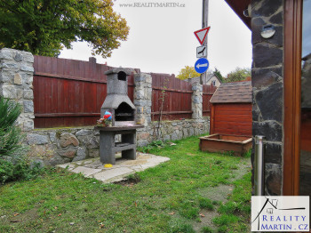 Na zahradě posezení, zahradní domek, bazén, zahradní gril.