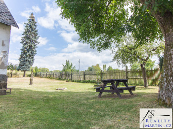 Na zahradě stodola, maštal, kolny a velký ořešák, který nabízí příjemné stínění po celý den.