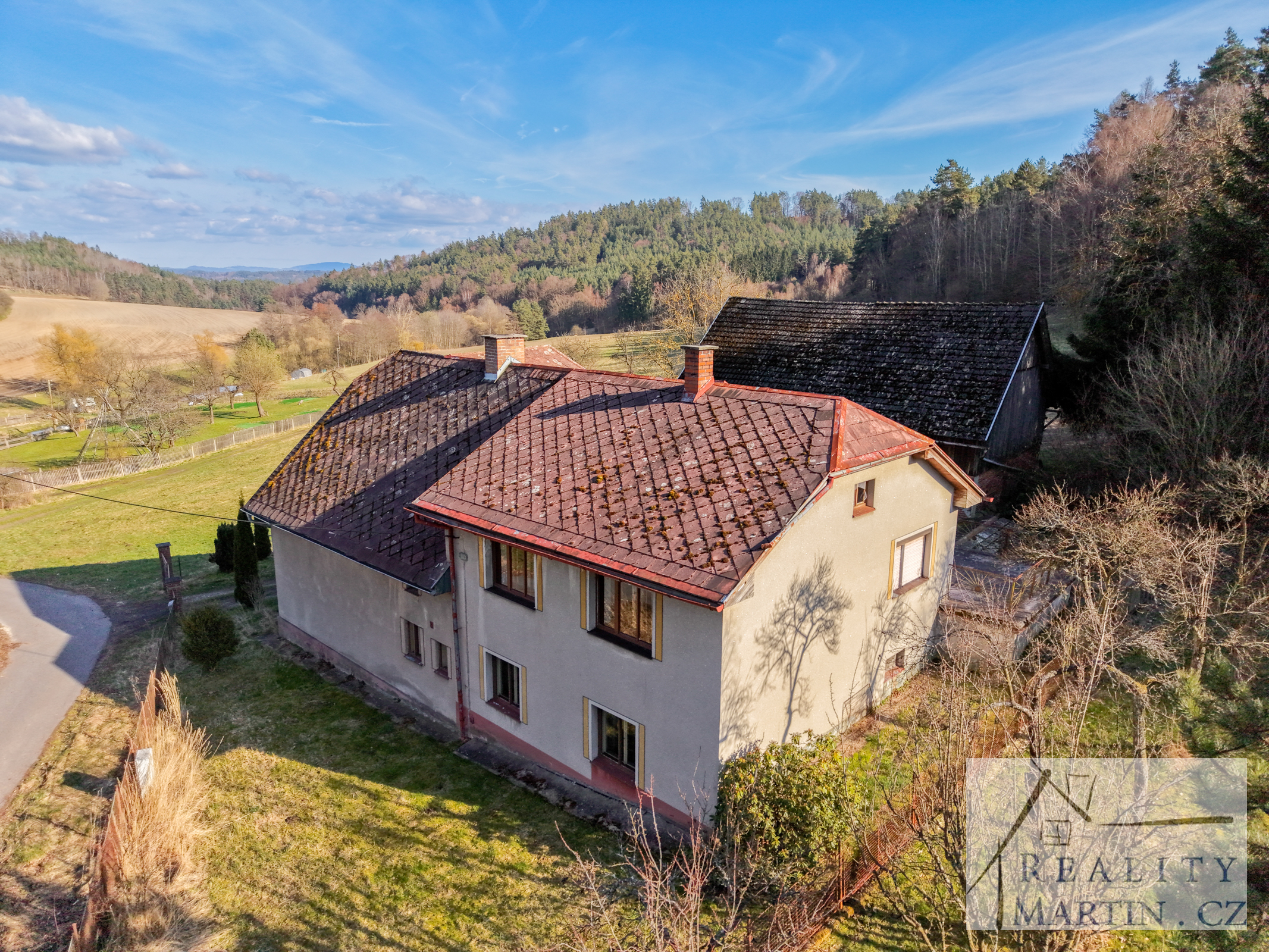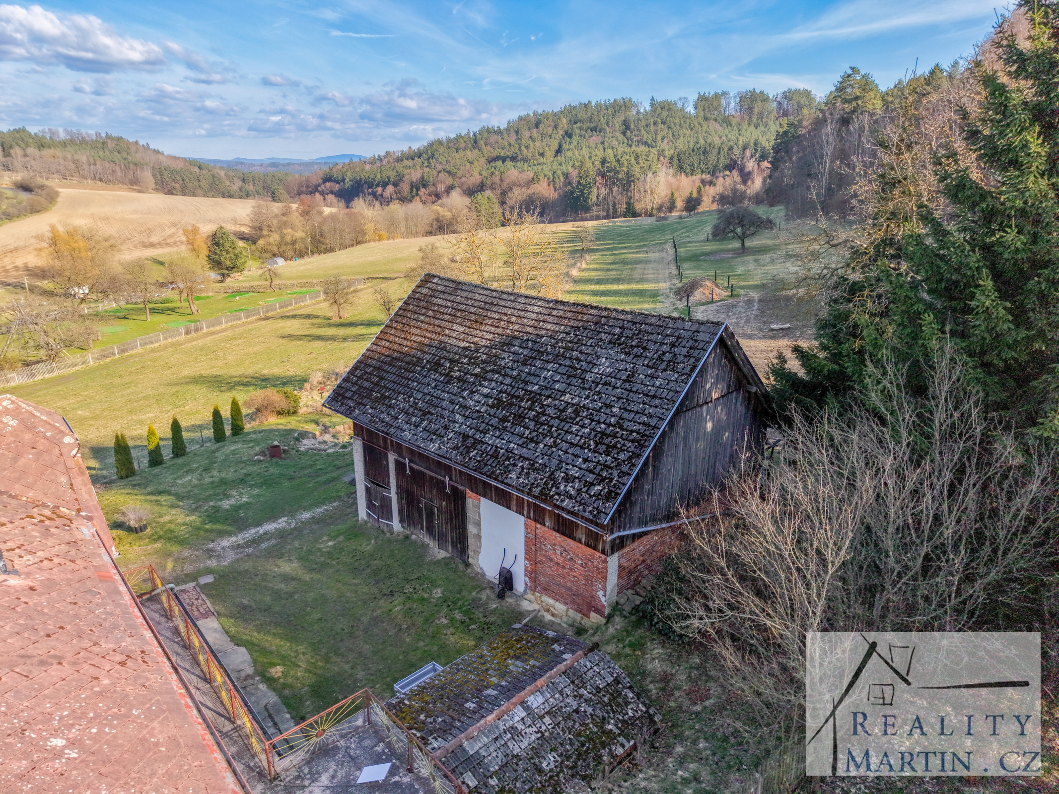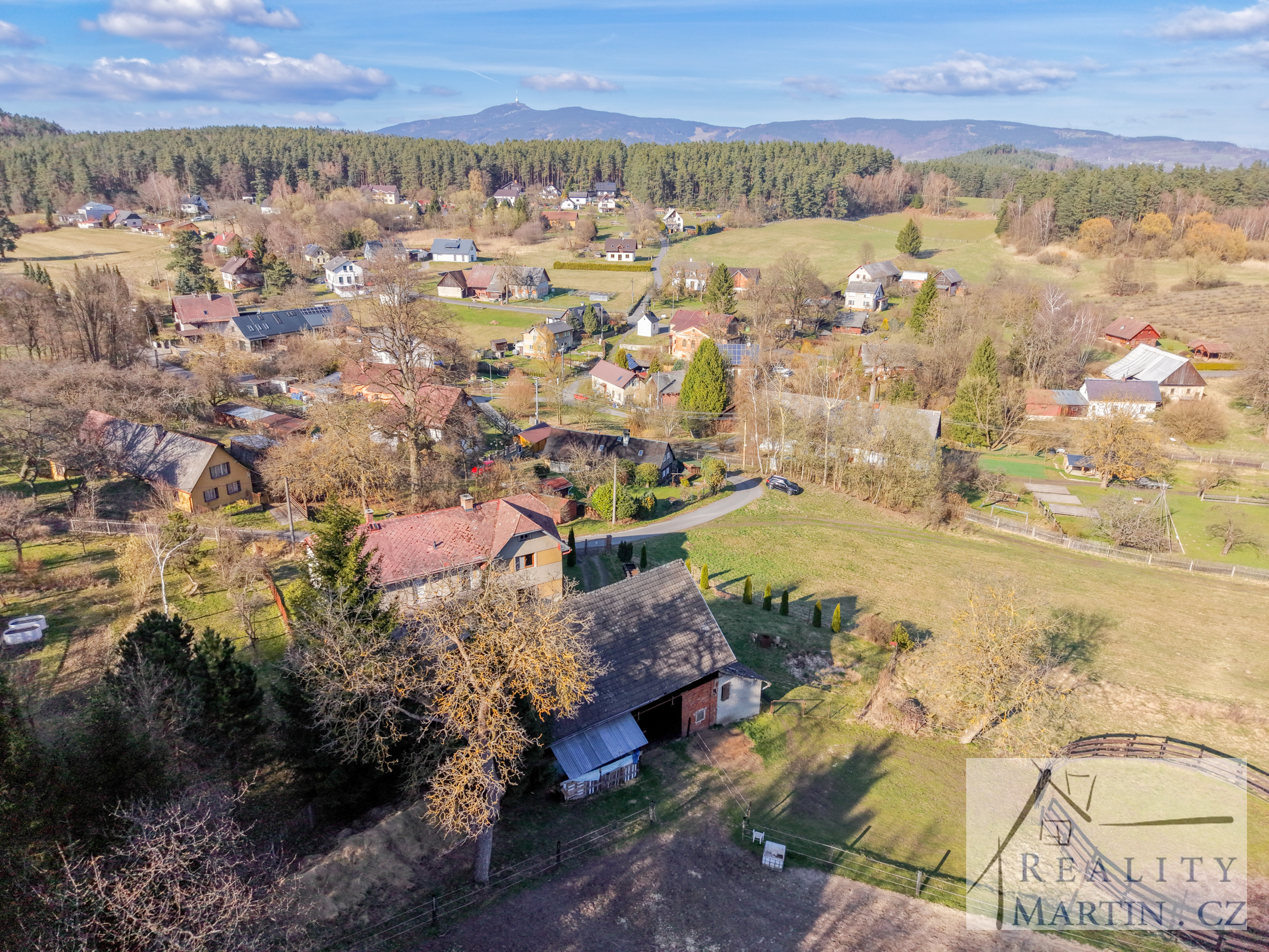 RealityMartin nabízí dvoupodlažní rodinný dům se stodolou (stáj pro koně), kruhovou jízdárnou a velkým pozemkem 8.209 m2 v obci Smržov - Český Dub, okr. Liberec s nádhernými výhledy na Ještěd.